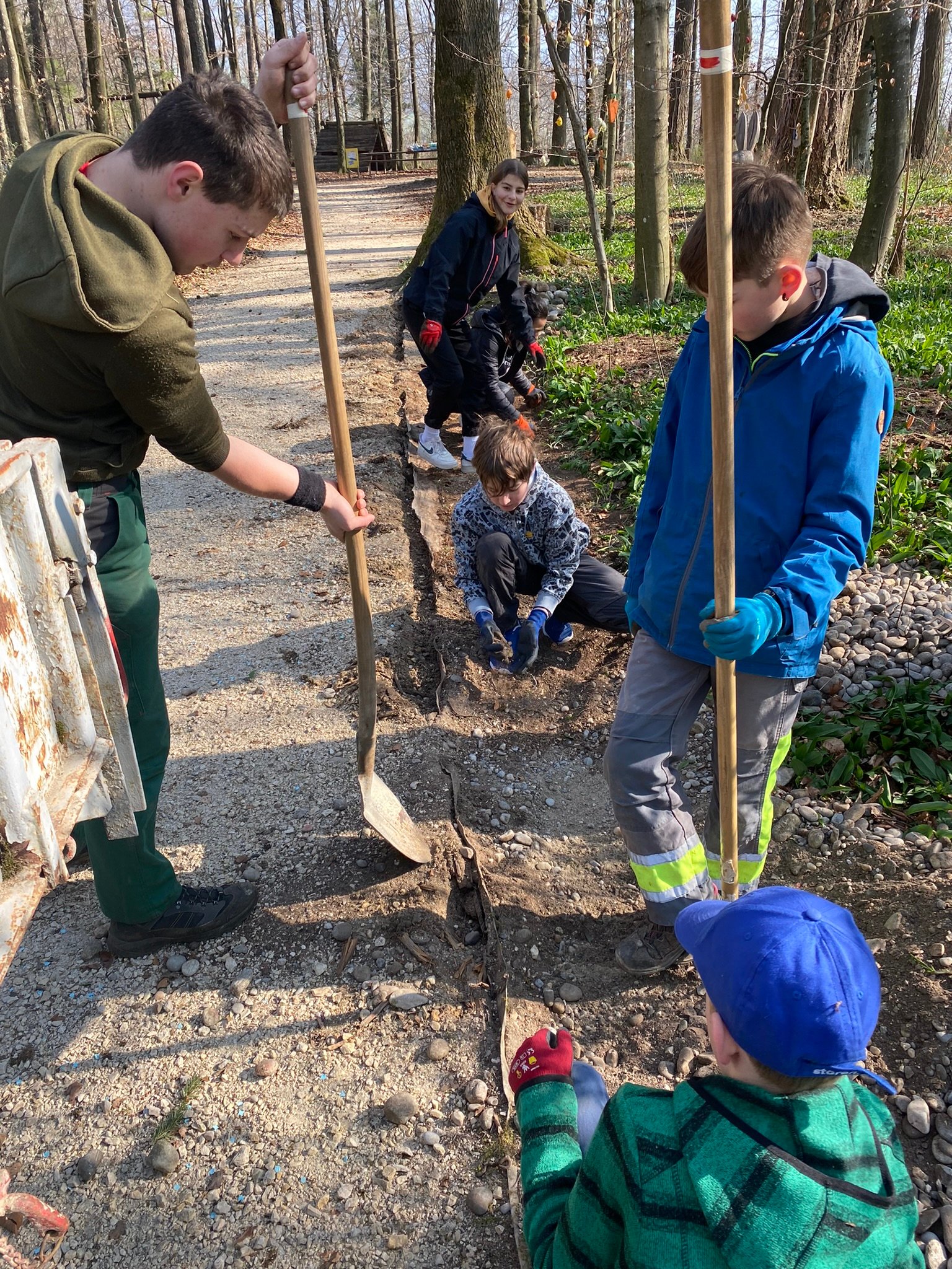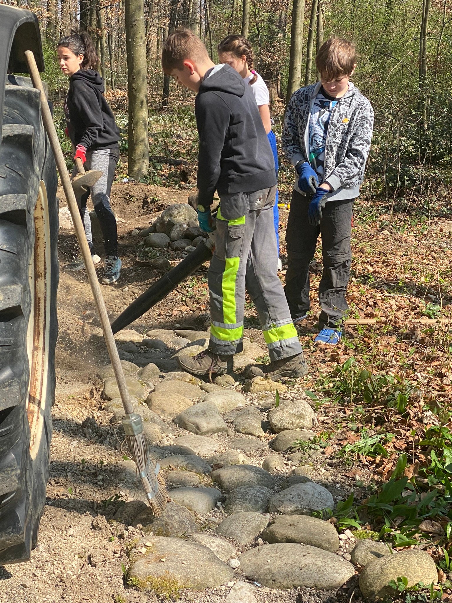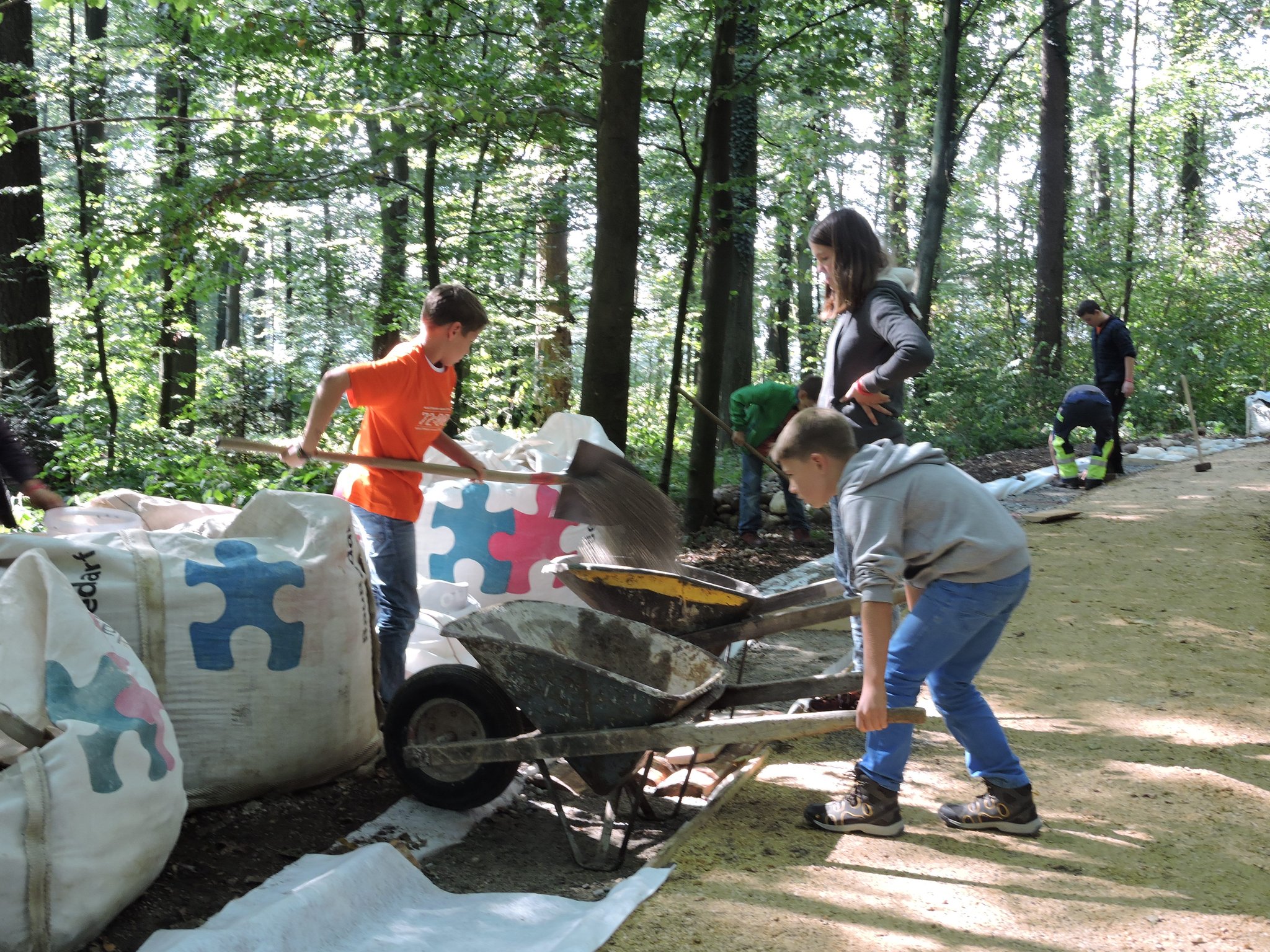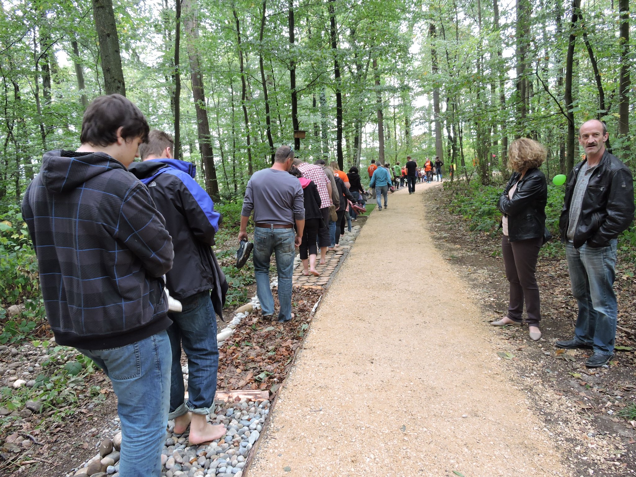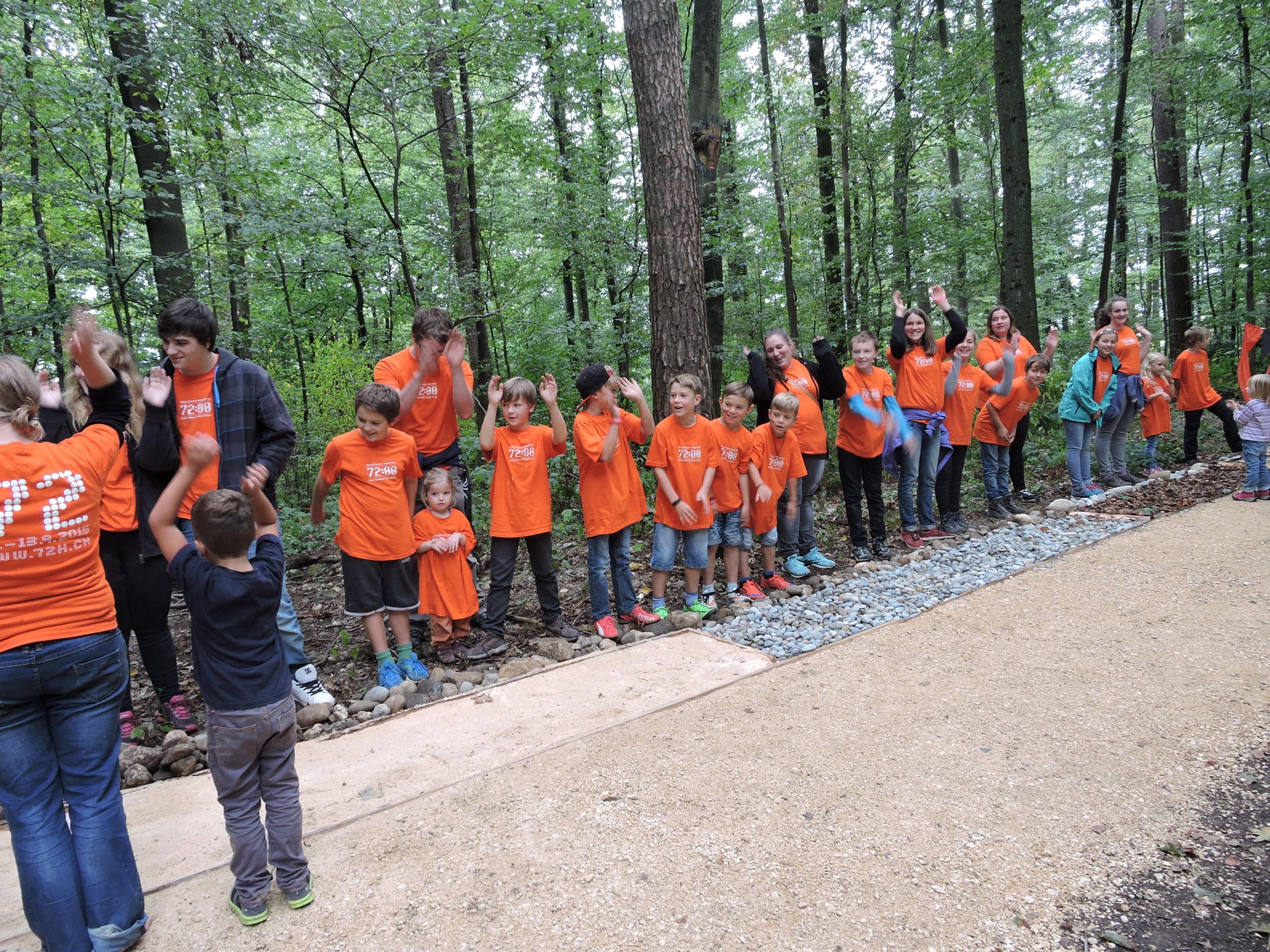 Rund 30 Kinder, Jugendliche und freiwillige Helfer arbeiteten mit und gestalteten erfolgreich einen 100 Meter lagen Barfussweg, welcher nun seit dem Sonntag, 13. September 2015 auch für die Öffentlichkeit im Wald, nahe des Eichenwegs in Flumenthal, zur Verfügung steht.